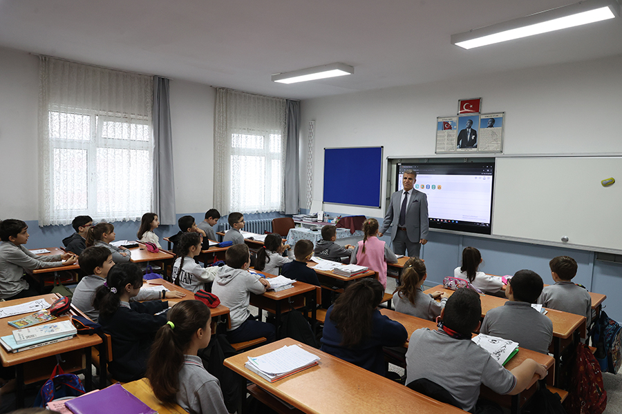İstiklal Marşı’nın okunmasının ardından çocuklar sınıflardaki sıralarına geçti.